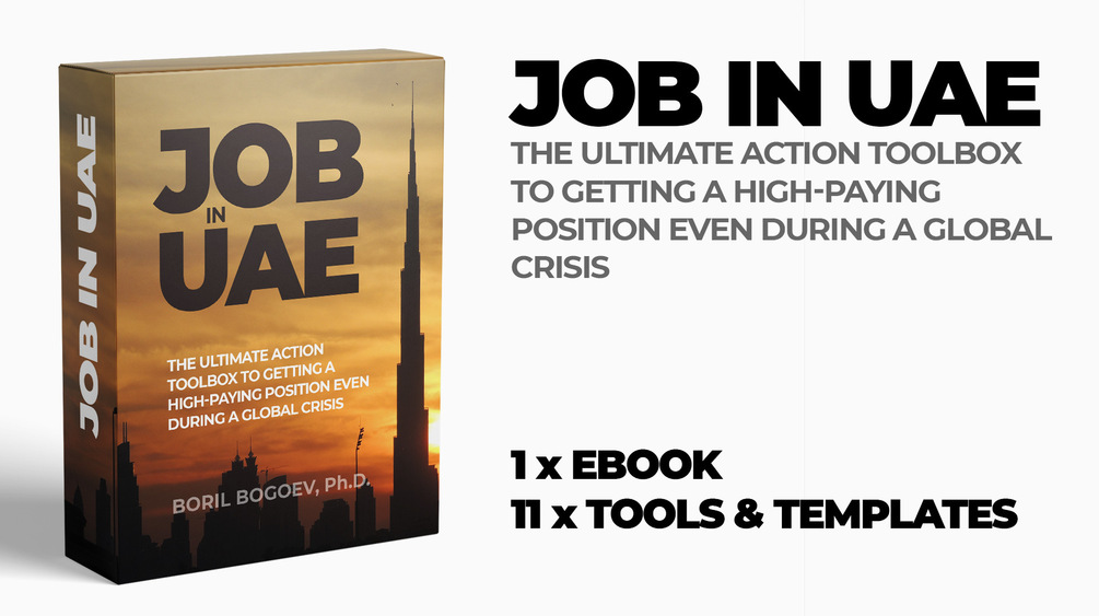 “JOB in UAE: The Ultimate Action Toolbox to Getting a High-Paying Position Even During a Global Crisis” is a pack of guides, tools and templates that you can grab and use today, now, in this very moment, to improve the results of your job hunting process and get your dream job in the UAE.